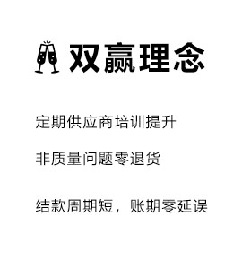 我们坚持与供应商 合作 发展 共赢, 提供更好的供应商体验。 供应商结款周期短,遇到节假日提前结算,账期零延误。
